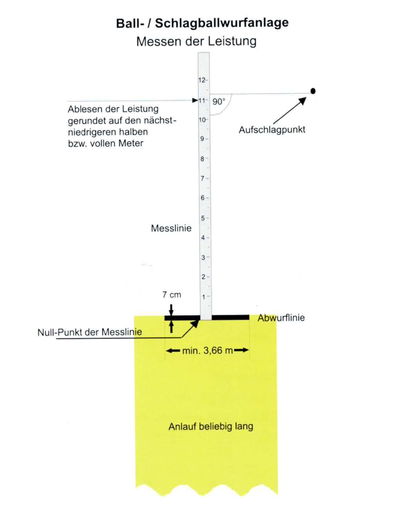 ablesen am Beginn der Absprungfläche (Anfangslinie ist mit einzubeziehen).