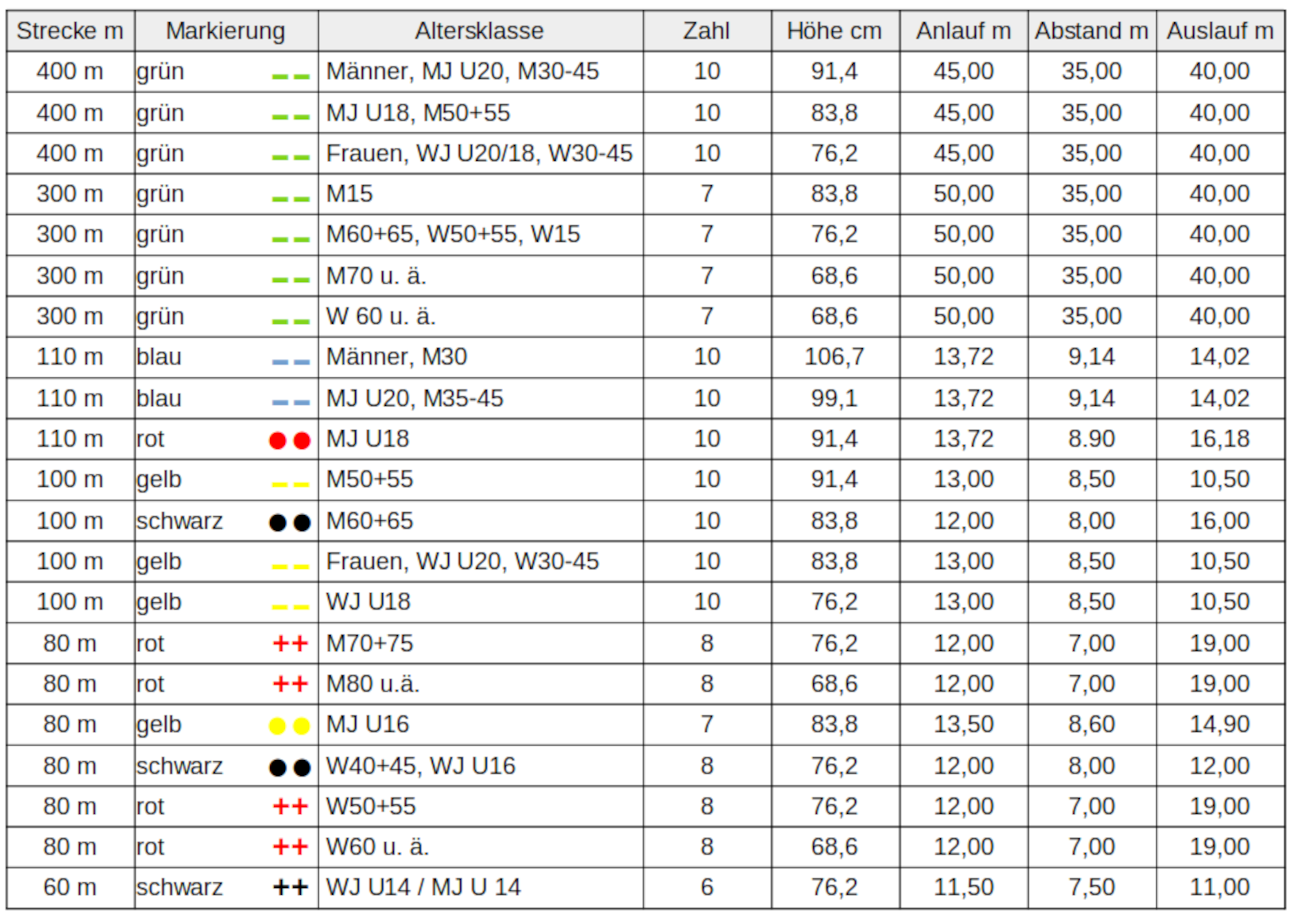 - Kampfrichterbox, Messband, Klapptisch und evtl. Sonnen-/